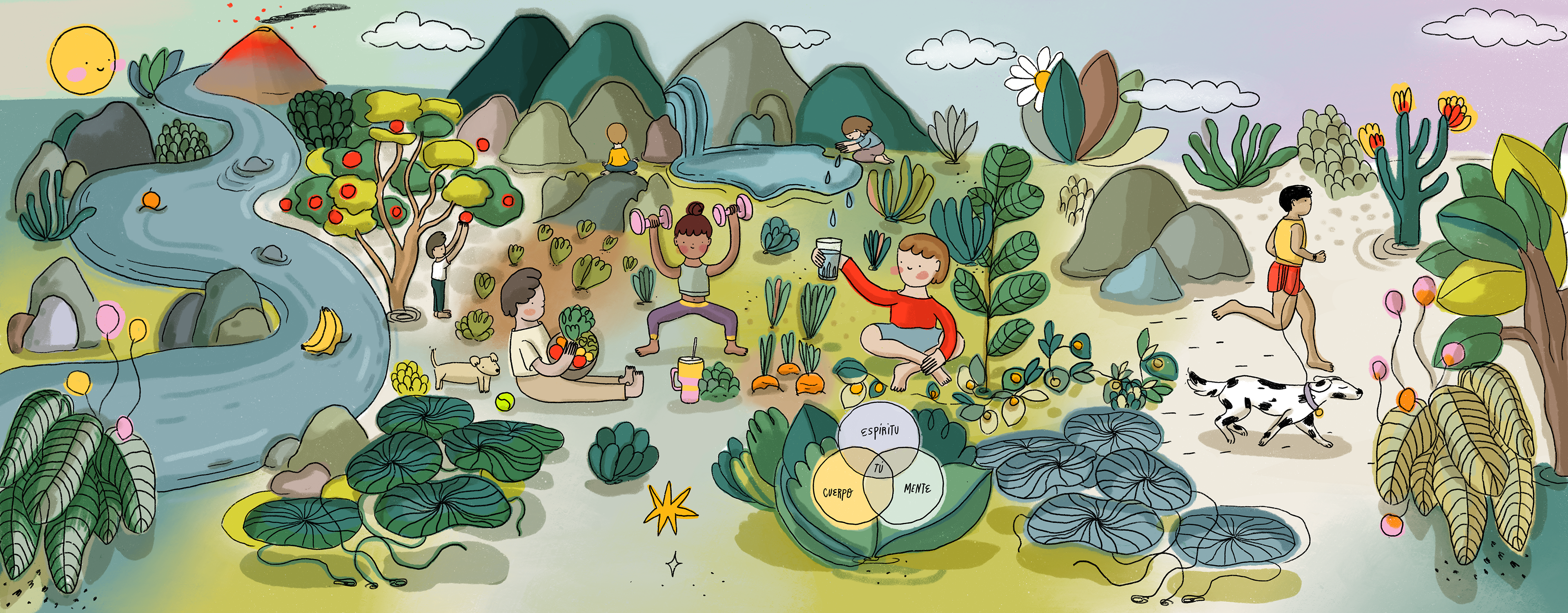Printed mural illustration for Asocolderma : segunda reunión de dermatología integrativa.