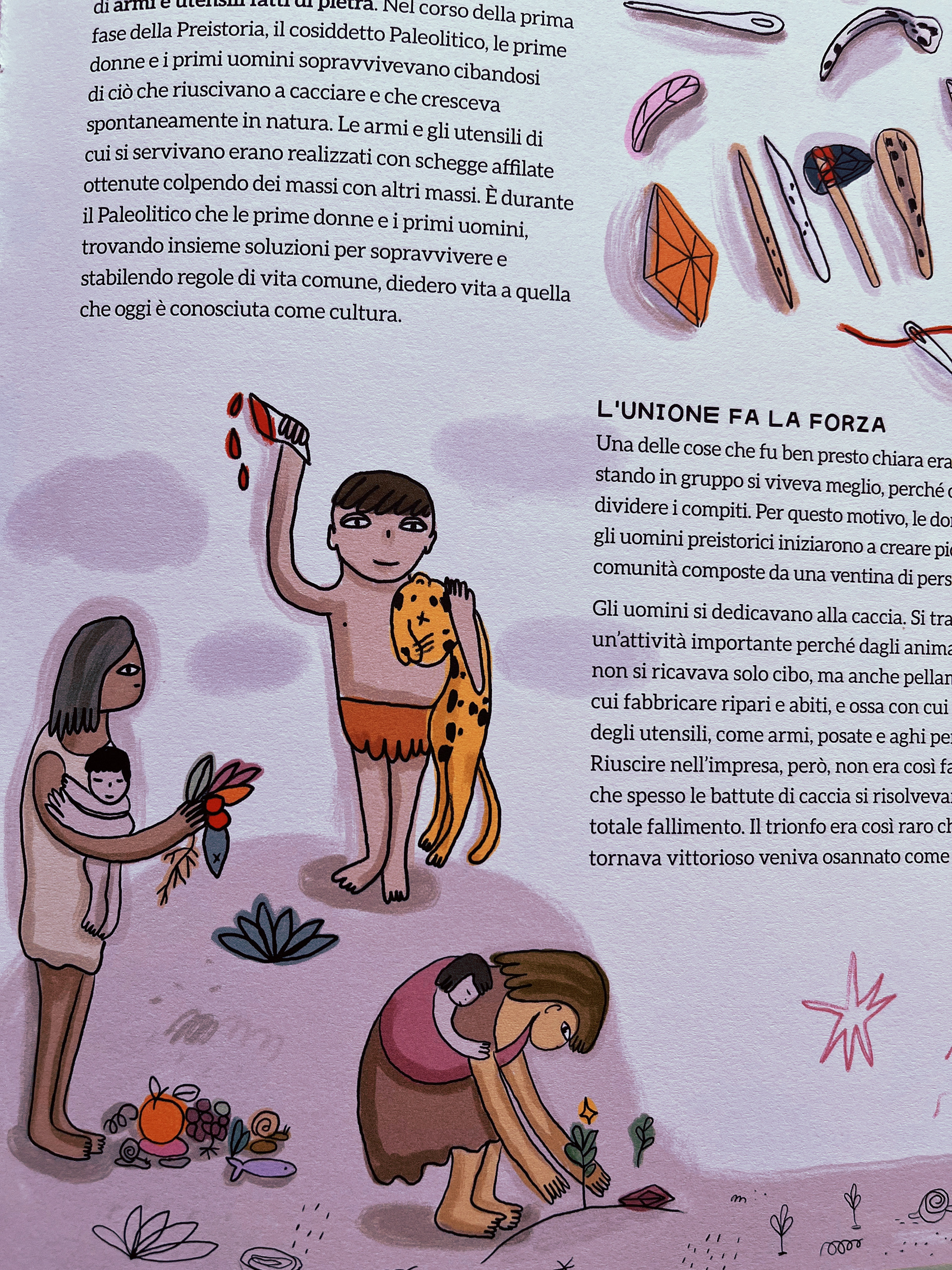 "¡LA HISTORIA TAMBÉN LA HAN HECHO LAS MUJERES! Hace 3 millones de años, los hombres construyeron las primeras herramientas de piedra para cazar. Hace 2 millones de años, los hombres caminaban en posición completamente erecta y habían descubierto ya el fuego. Hace 1 millón de años, los hombres se organizaban en grupos pequeños e inventaban… Vale, de acuerdo, pero ¿y las mujeres? Mientras, ¿dónde estaban las mujeres?" www.duomoediciones.com/wp-content/uploads/2022/02/CapriaMartucci_Historiadelasmujeres.pdf
