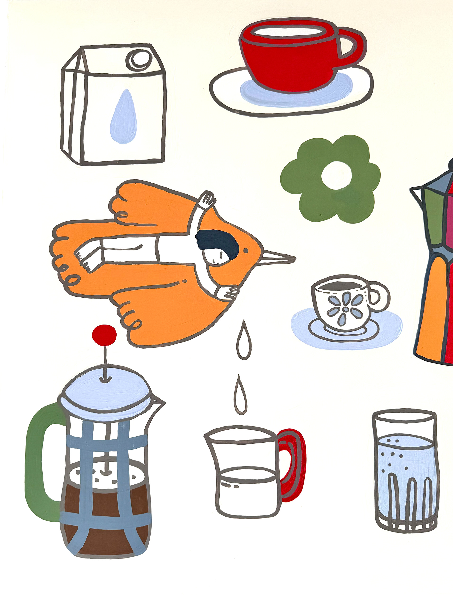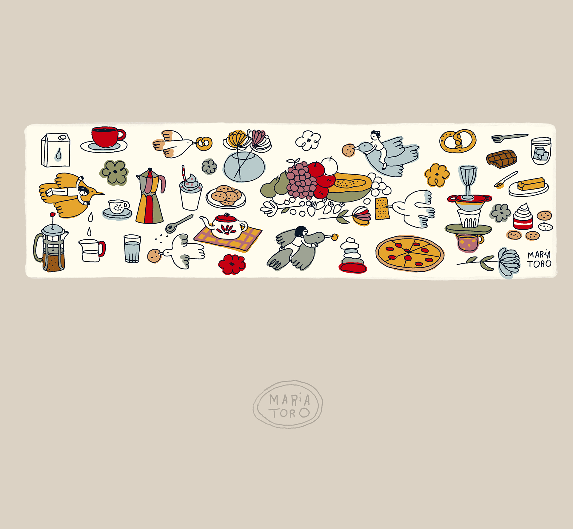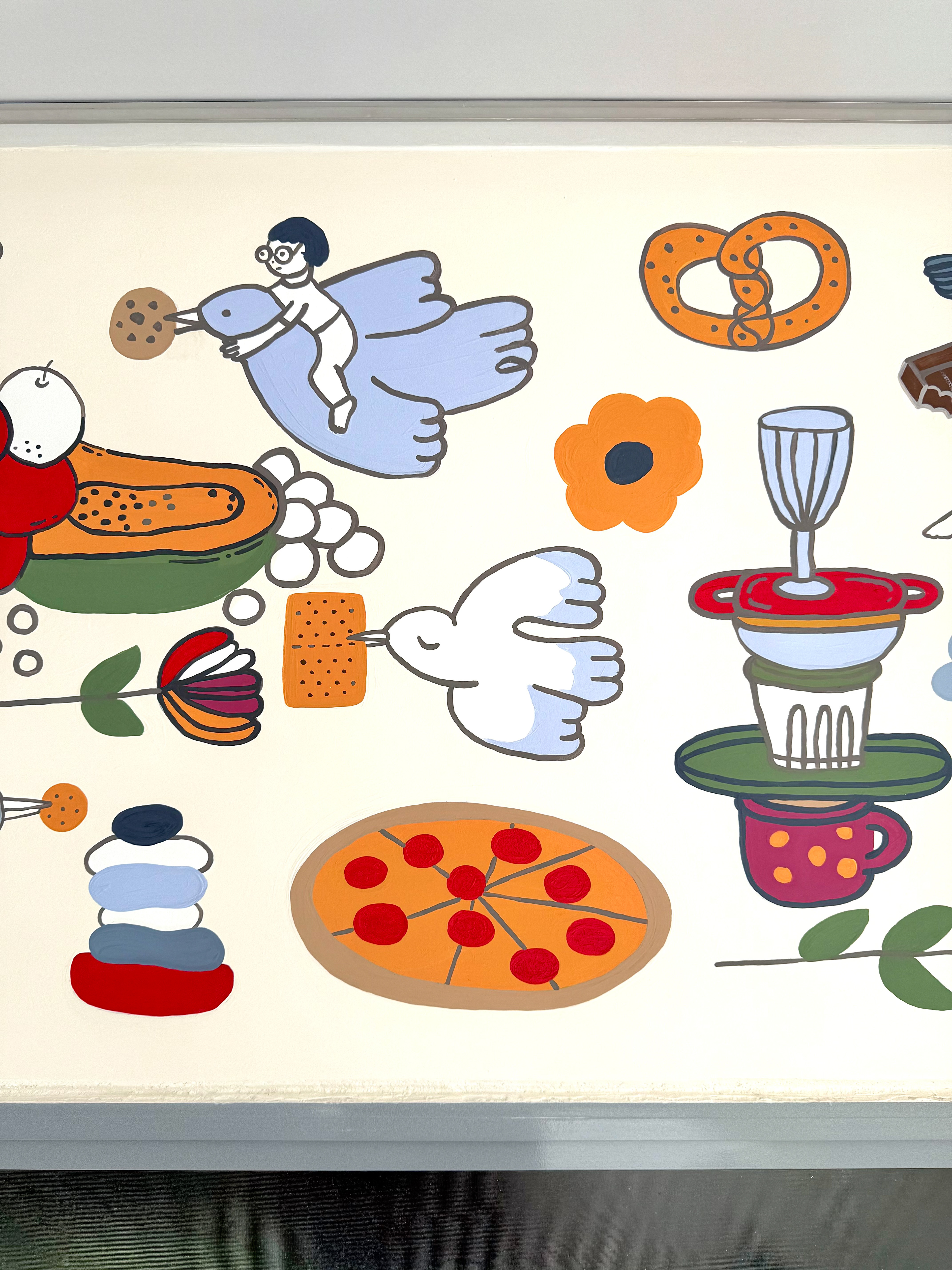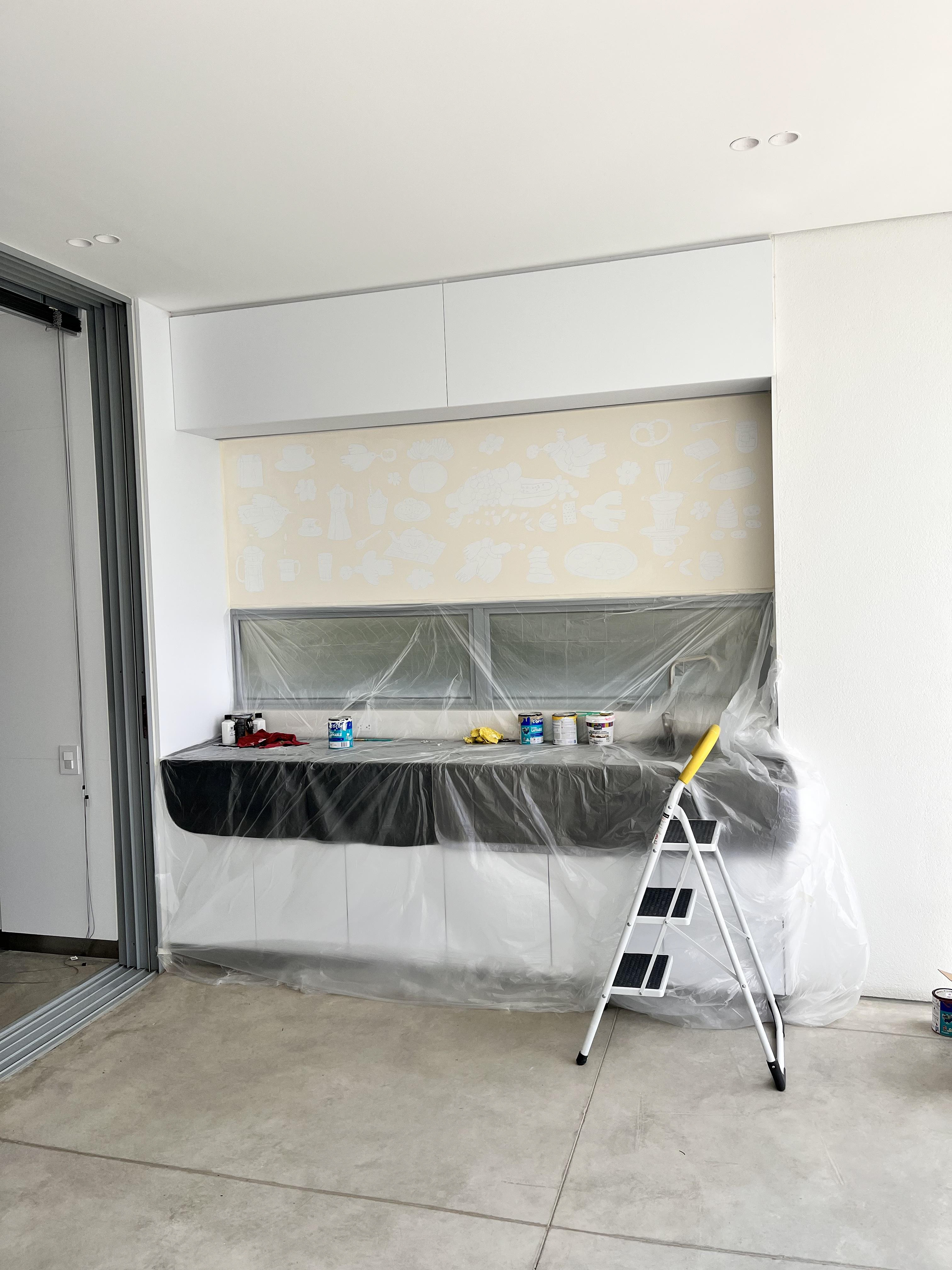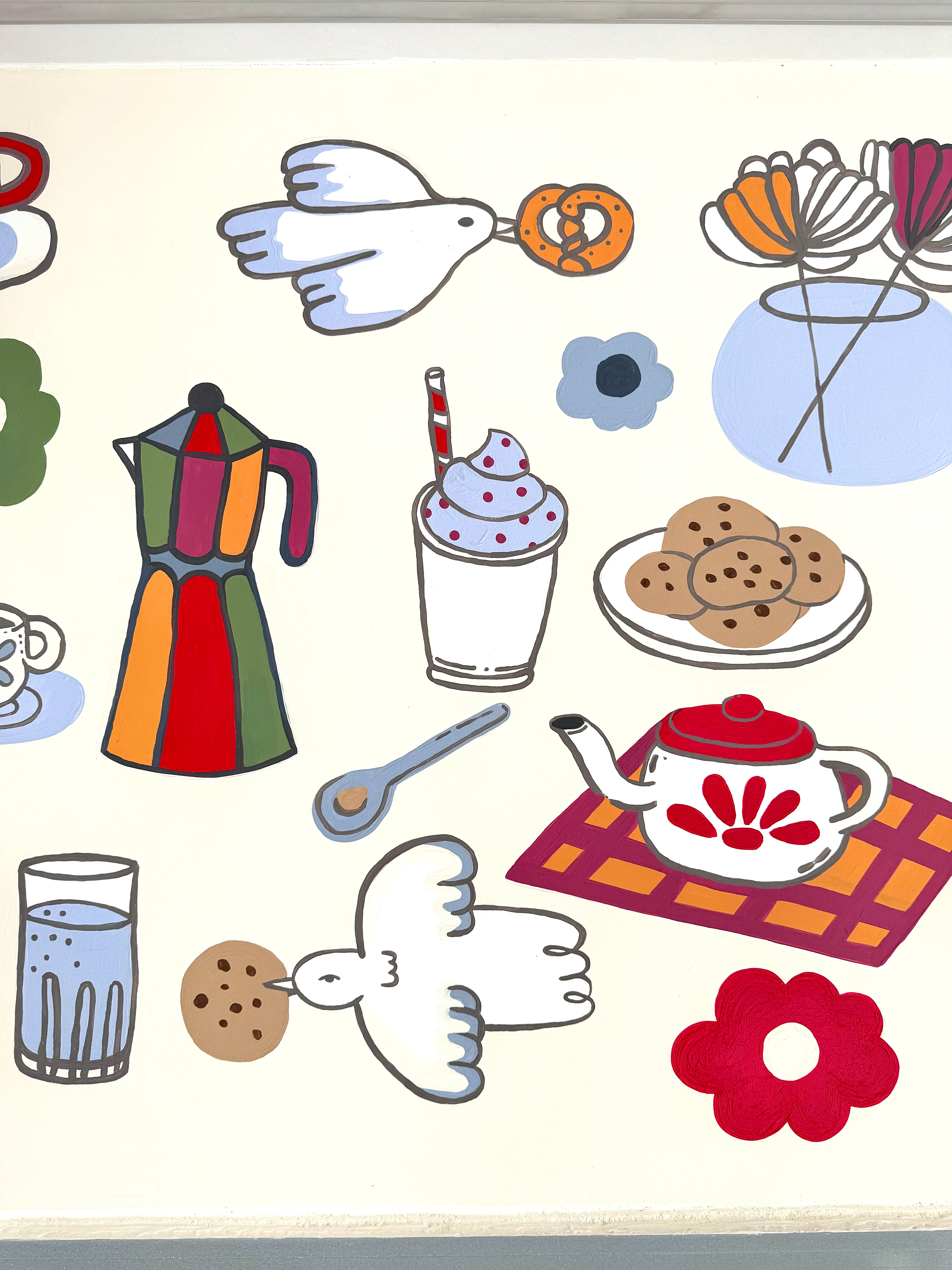 Colombian painter Beatriz Olano’s work is defined by her use of geometry, color, and line, exploring the relationship between objects and space with a distinctly architectural feel. Beatriz and I have shared a friendship and mutual admiration for several years. When she finished her studio, she invited me to be part of it and asked me to create a mural inspired by what she and her husband love most—their favorite moments, foods, and everyday joys. This project has been one of the most rewarding experiences of my life. Thank you, Beatriz!