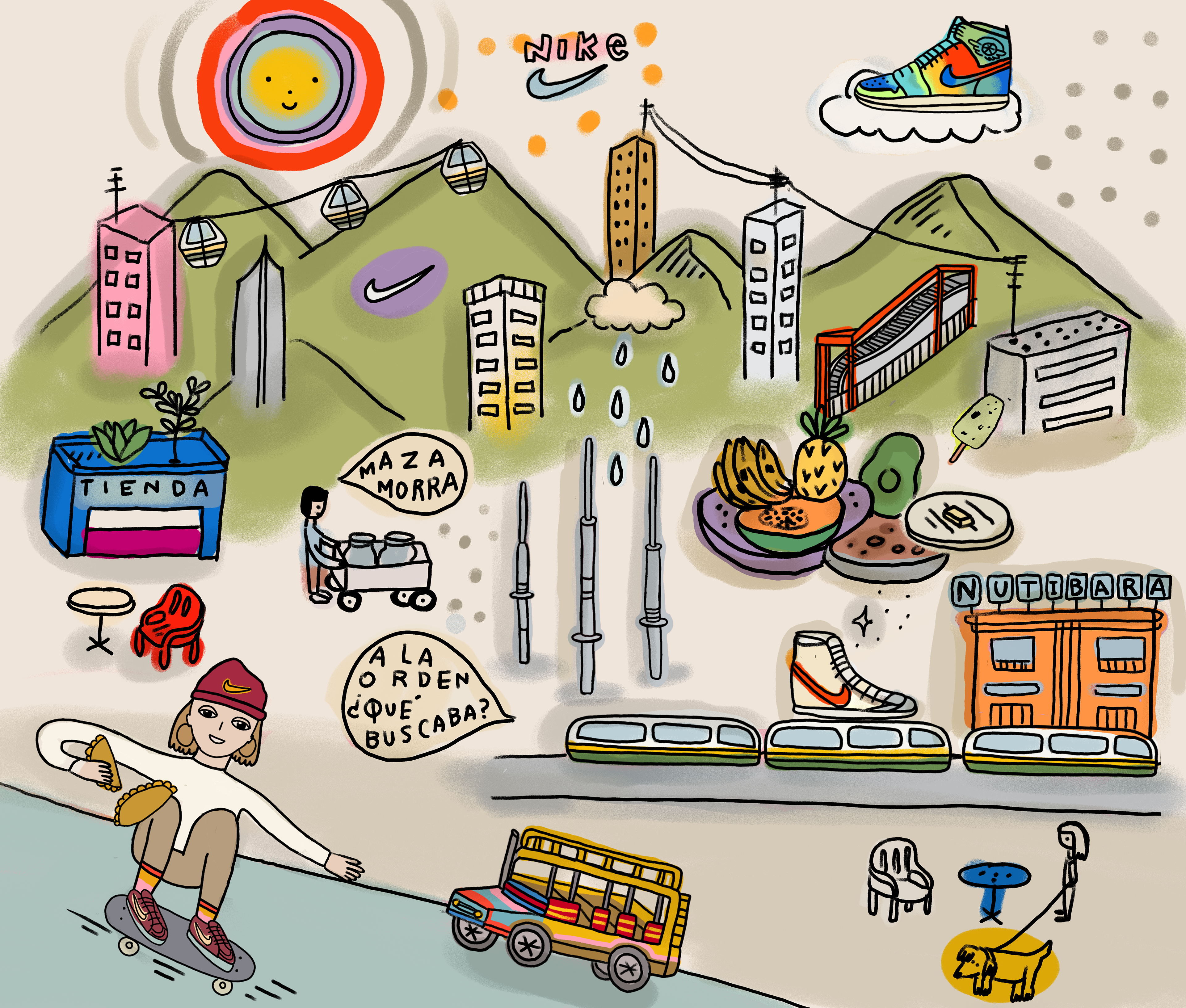 MURAL for the Nike Rise store in Colombia. Design and illustration for the Nike Rise opening campaign in Medellin. A full concept was created in the illustrations applied, inspired by the city and its history, tradition and culture.